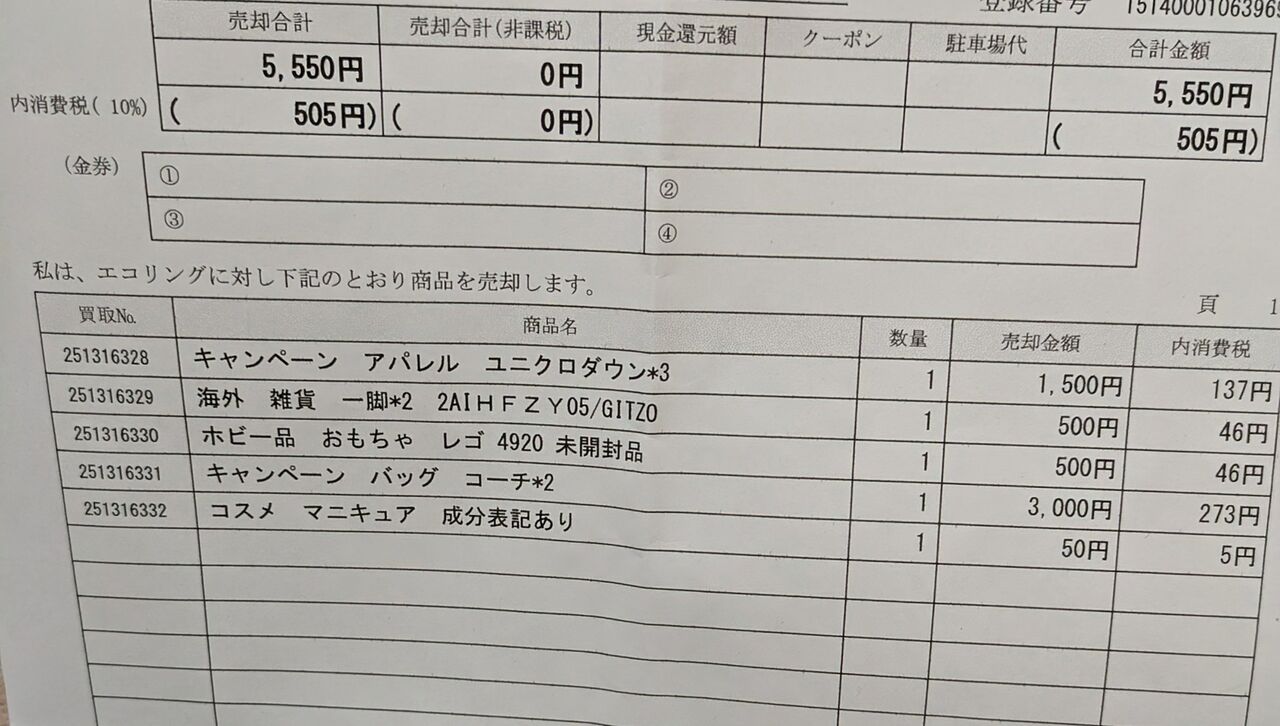 昔使ってたコーチバッグやカメラ小物、おもちゃなどで5550円。