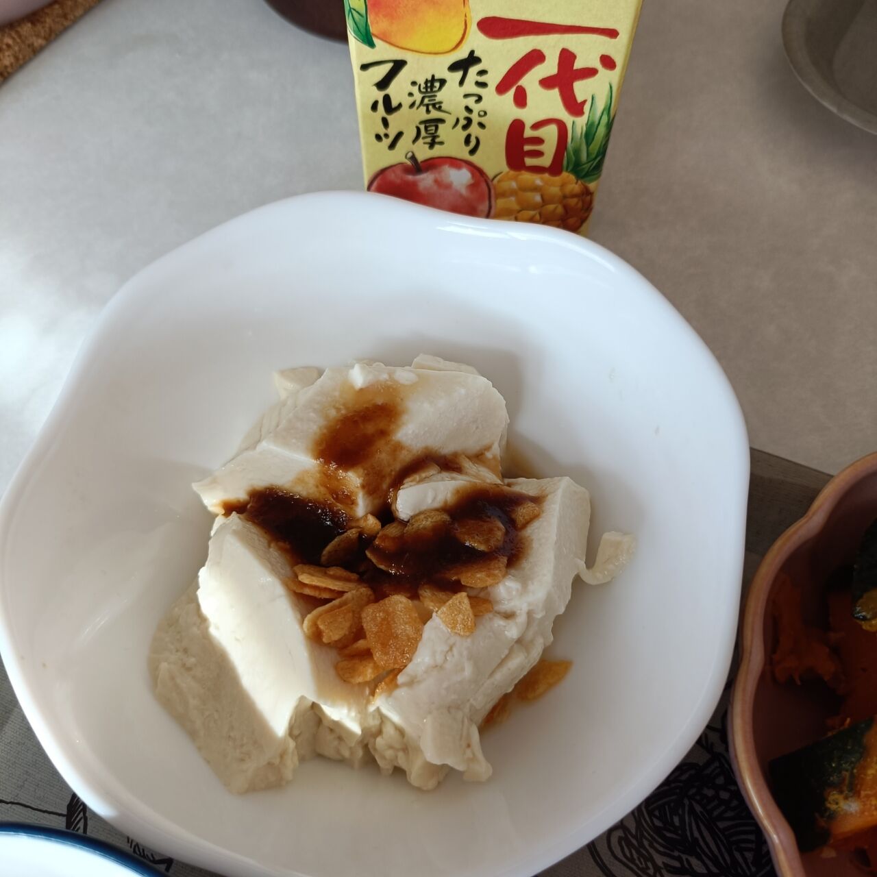 豆腐にフライドガーリックと焼肉のたれ二代目!