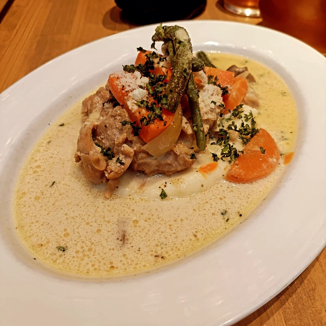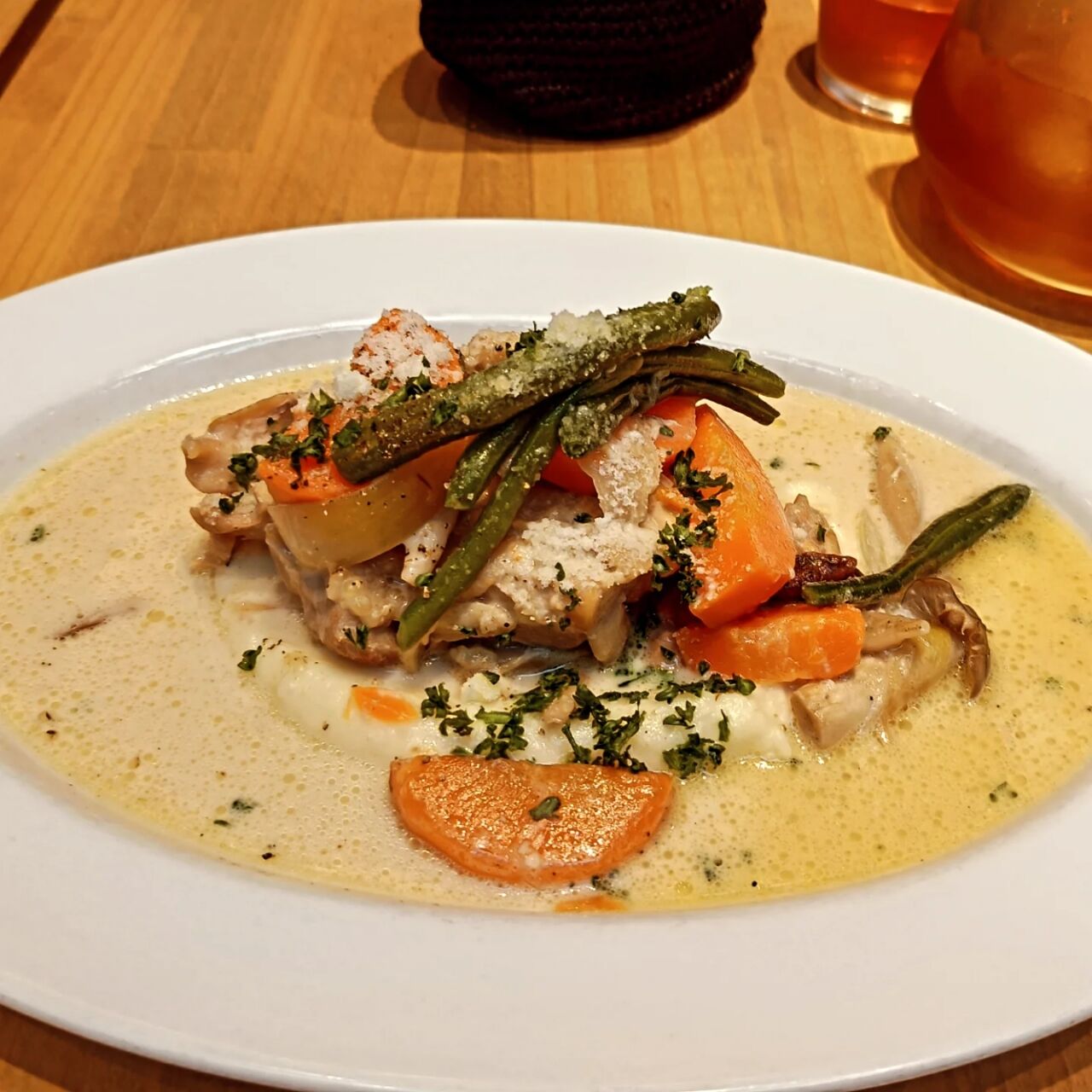 メインは鶏もも肉とキノコのクリームソース🍄🟫