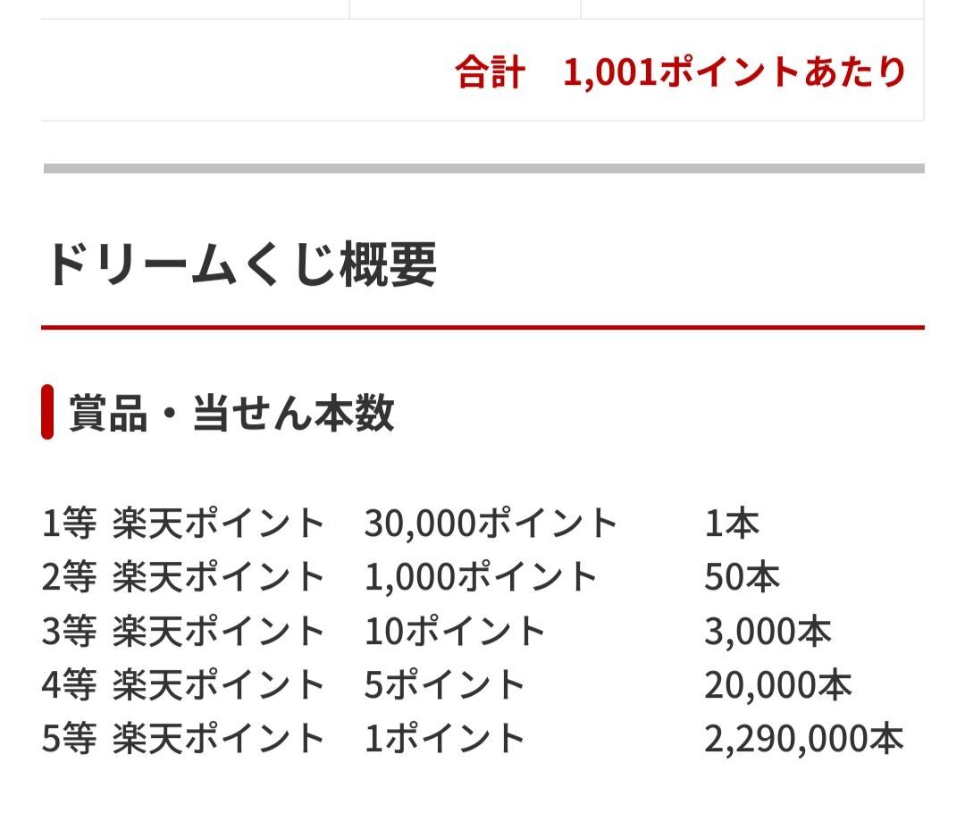 2024年10月18日 楽天のドリームくじで当たった〜🎯 コメント数:0 コメント カテゴリ:懸賞 by tomohapiraki いつも楽天から来るメルマガをコツコツとクリックして抽選券をゲットしても当たりはするけど1ポイントが何個かくらいだったから今回も何ポイント当たったのかな〜?って見たら!!えぇ~〜!😲1000ポイントが1つ、1ポイントが1つ当たってました🎯えぇ~〜〜〜!!1000ポイント??👀信じられない〜!当たるんだ〜!わぁい🎶🎶2等ですよ〜🎯50本の中に入れました〜✨1等は30000ポイント!1人どこかで当たった人がいるって事ですね!スゴイ✨これからもコツコツと頑張ろう💪 「懸賞」カテゴリの最新記事 タグ :#楽天メルマガ#ドリームくじ#当たり#1000ポイント#2等賞#コツコツ頑張る < 前の記事次の記事 > コメント コメントフォーム 名前 コメント 記事の評価 リセット リセット 顔 星 情報を記憶 コメントを投稿する