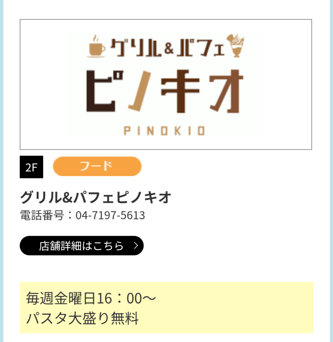 ピノキオのパスタ大盛り無料に変更(笑)