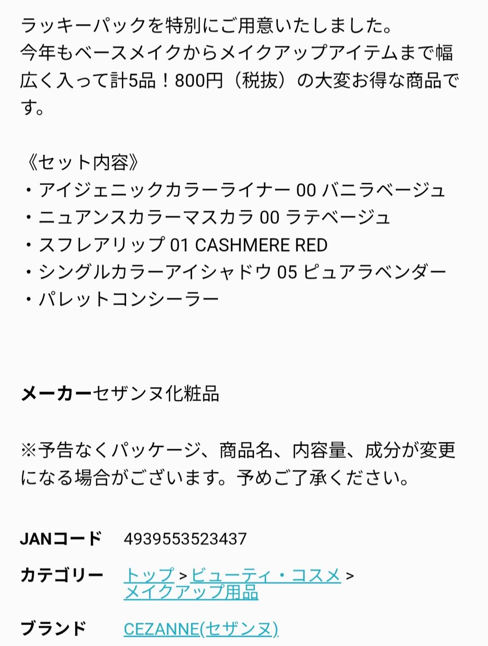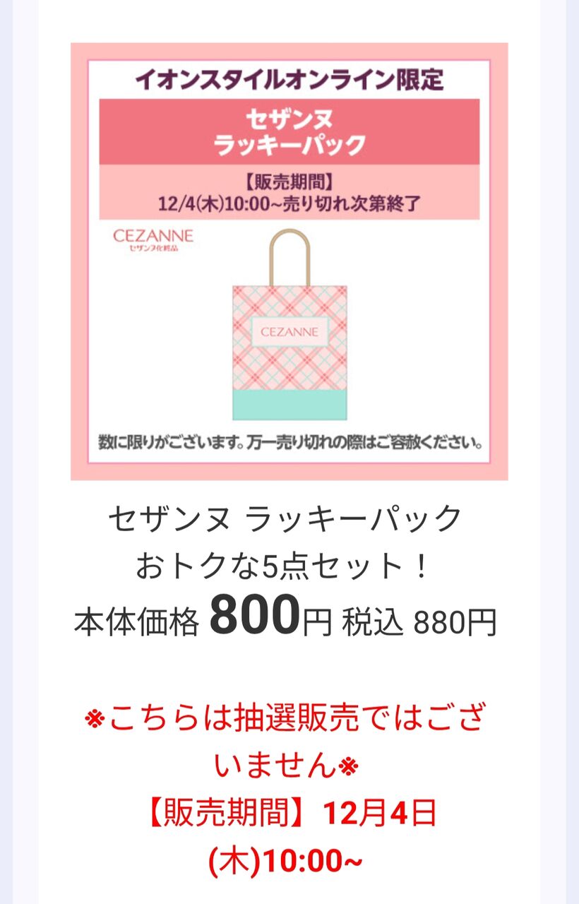 そして12/4にはセザンヌラッキーパック販売!