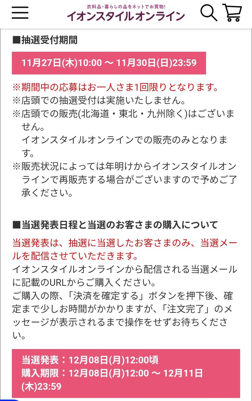 抽選申し込みは11/30まで。