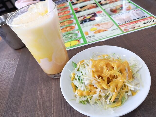 サラダとマンゴーラッシー
