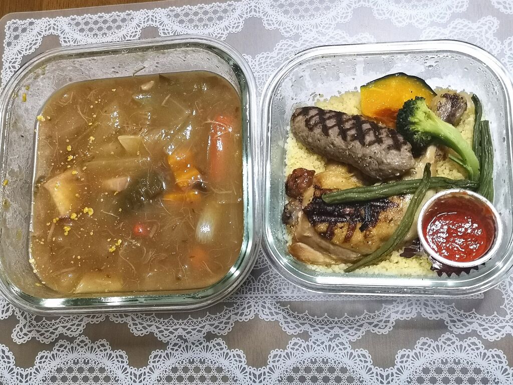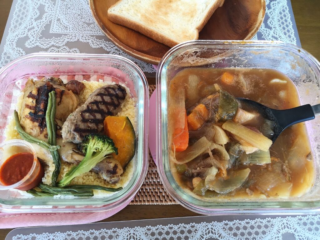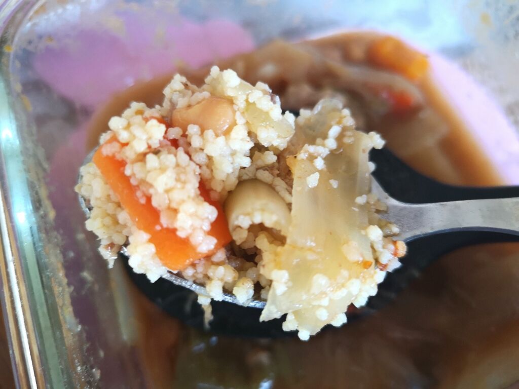お肉や野菜、ビーンズの煮こみスープをクスクスにかけていただきま〜す(^o^)