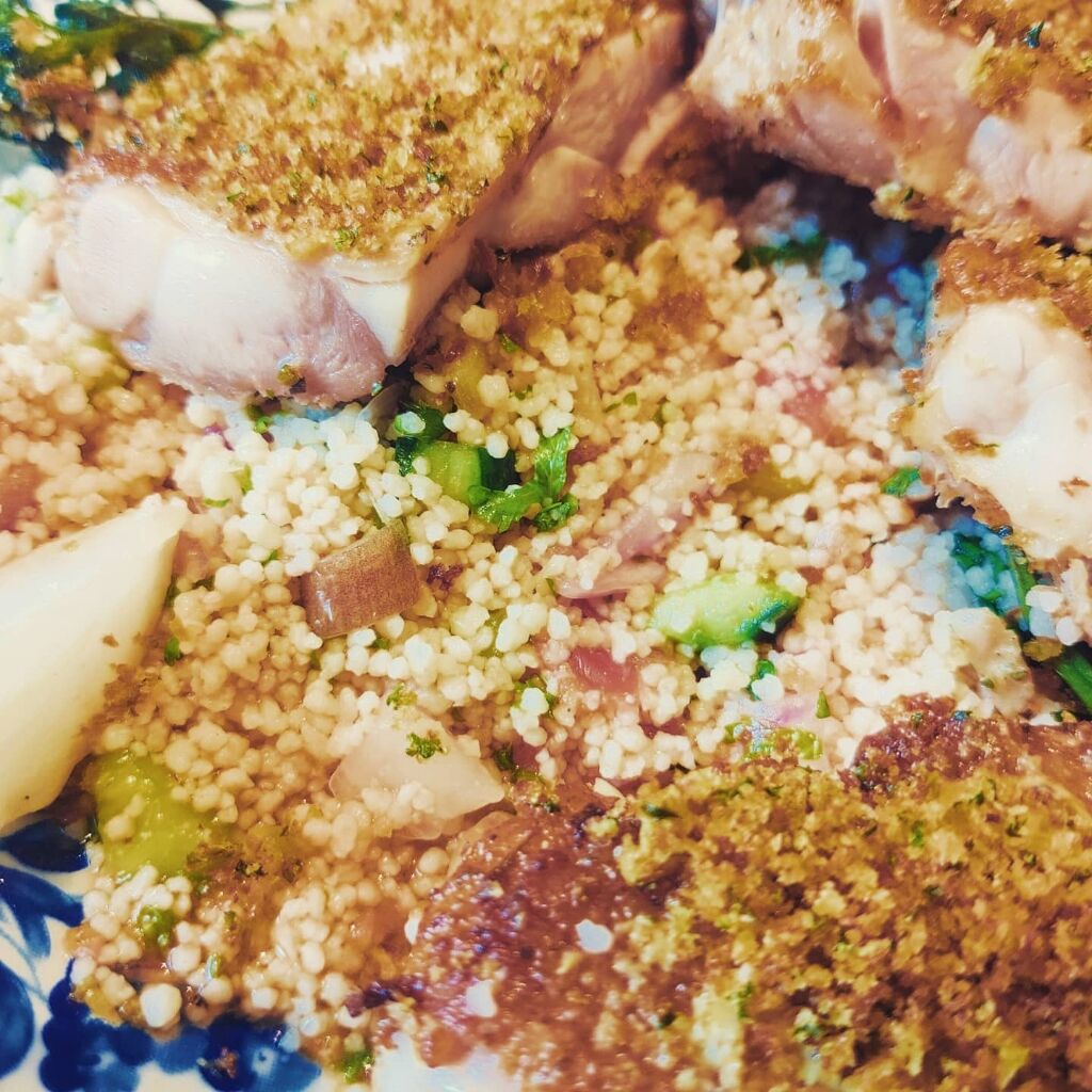 お肉の下にはクスクスのサラダ!