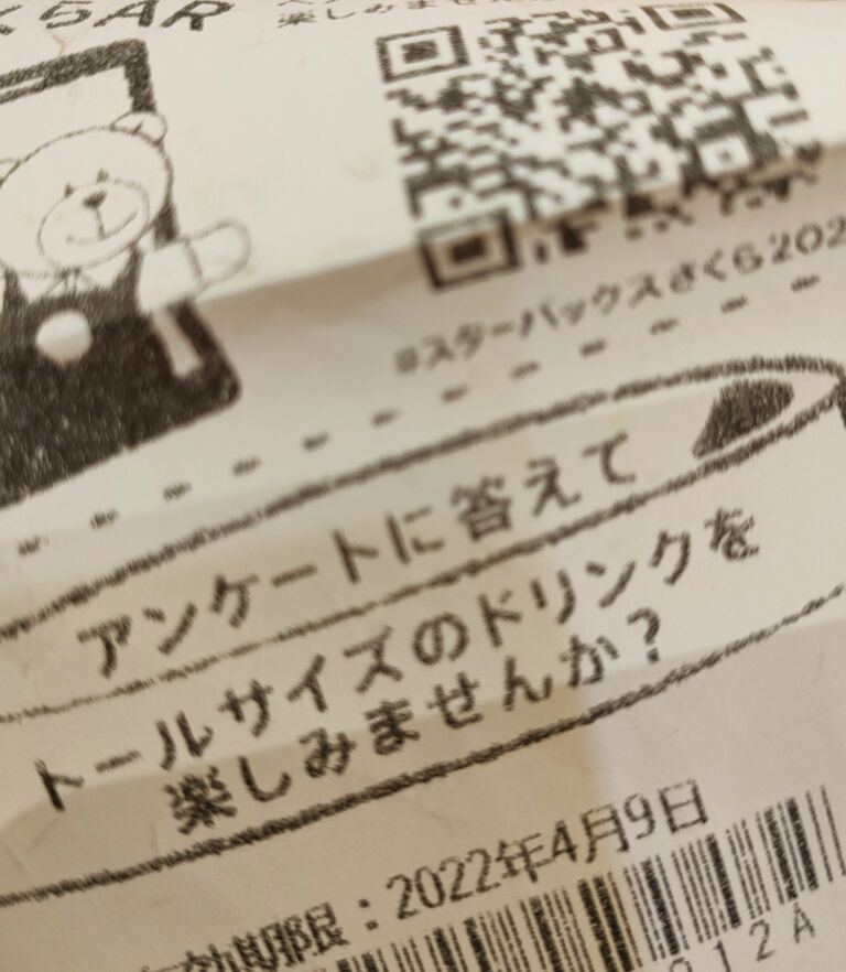 先月スタバに行った時、もらったレシートがアンケート付のアタリレシートだったんです〜🎶