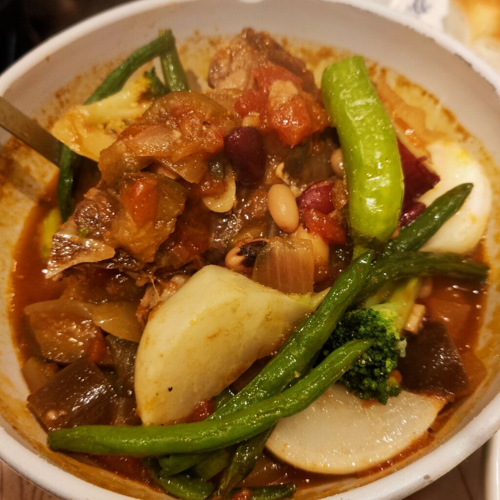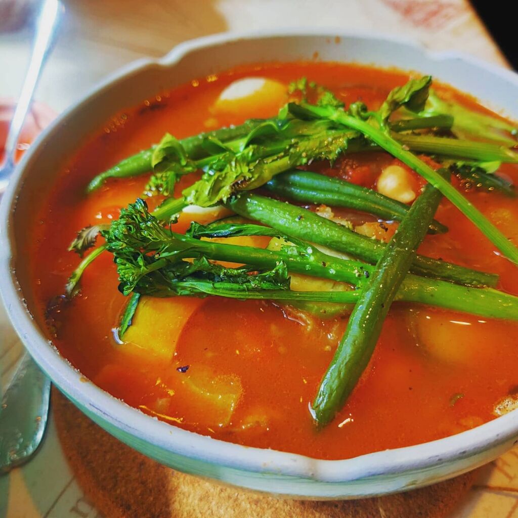 普通サイズは野菜やお肉たっぷり入ったスープが鍋で出てくるんですよ〜🍲