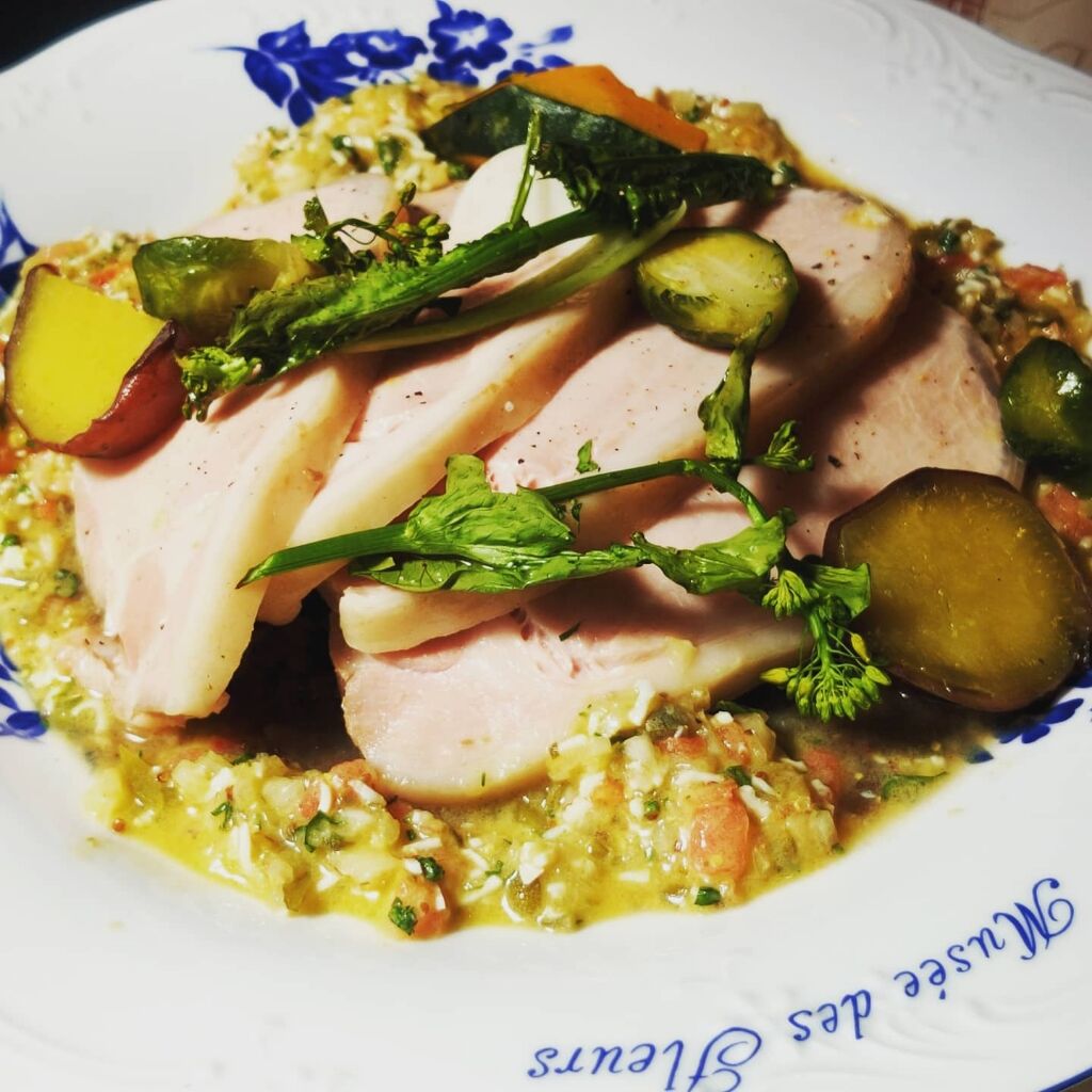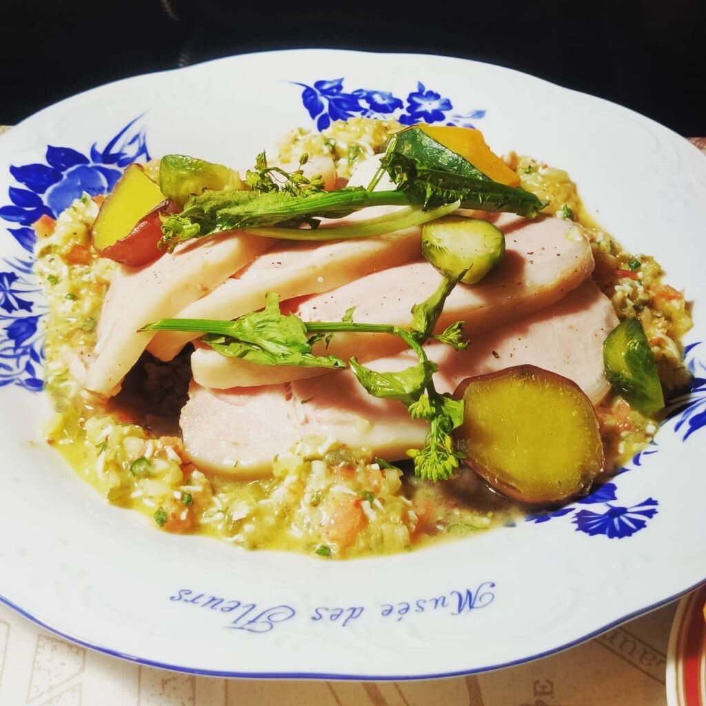 日替わりの鶏もも肉のレモンクリーム煮にしようかな〜って思ったら.もう10月にはランチメニューからなくなってると思ってたクスクス発見👀🎶