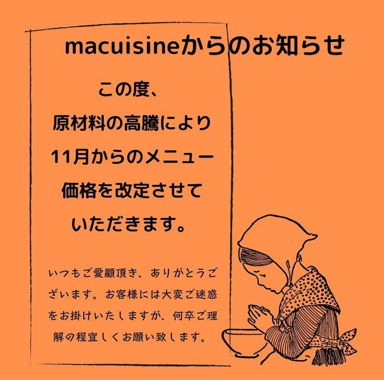 11月からメニュー価格改定されます。