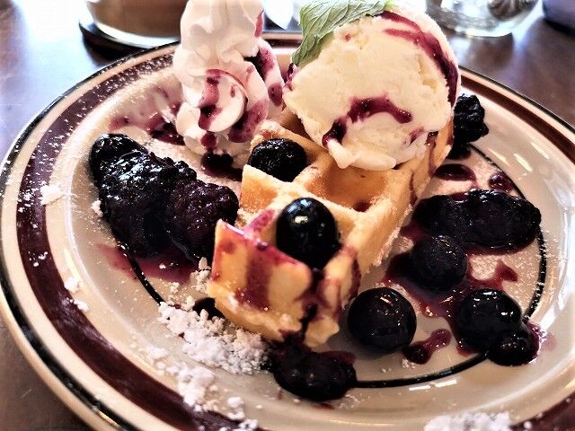 ミックスベリーのワッフルにしました。