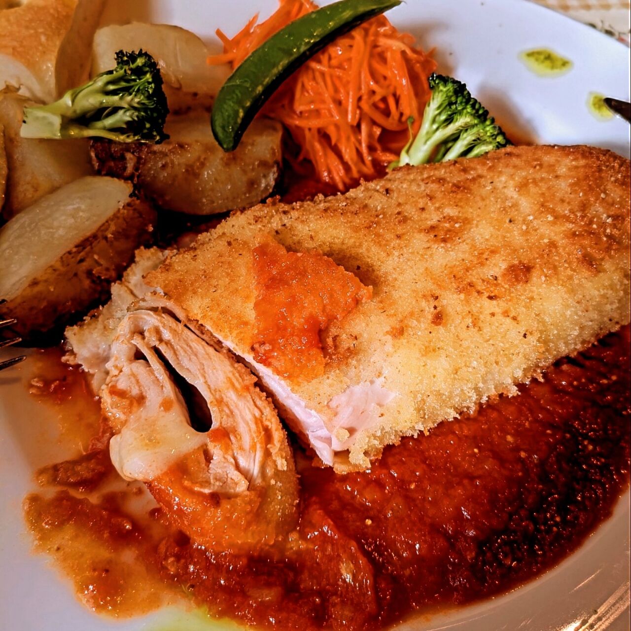 そんな話してたら鶏とチーズのコルドンブルー風がやってきた〜!