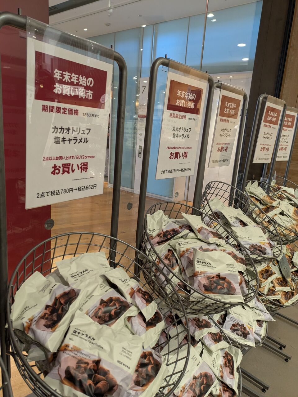 エスカレーターで無印良品に降りたらカカオトリュフの試食やってて(笑)