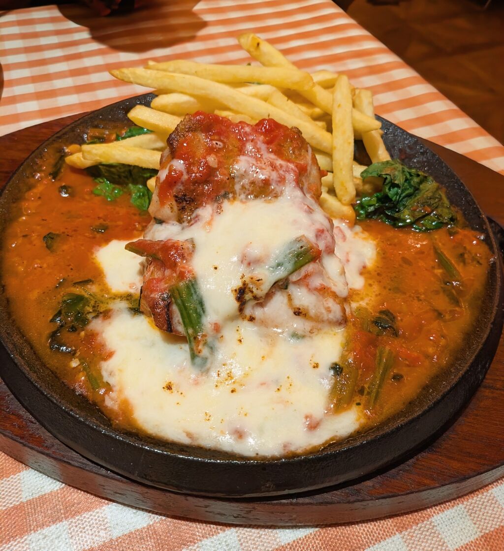 真っ赤なトマトのロマーナチキンステーキも肉厚なお肉にチーズとトマトのソースが溢れんばかり〜🍅