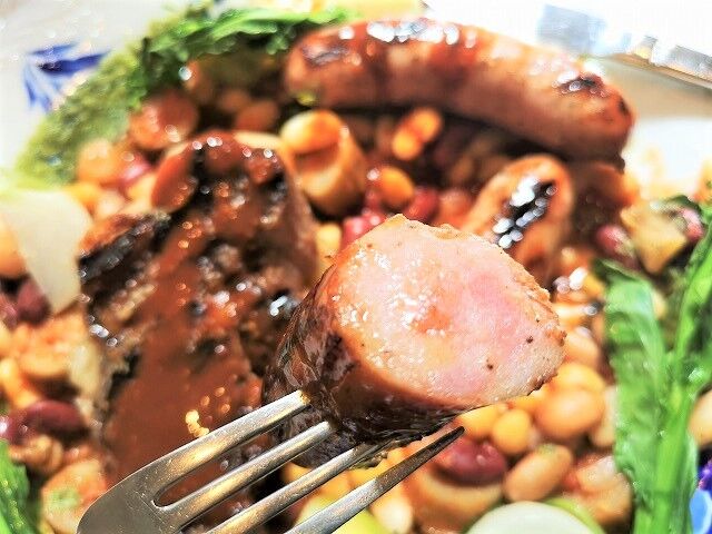 豚肩ロースのコンフィをグリルしたものと、ビッグソーセージがこんがり~