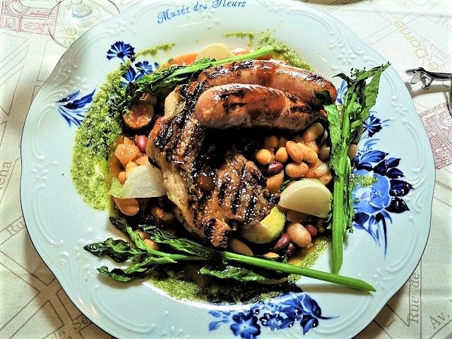 この日の日替わり。豚肉とソーセージのグリエ 1,000円+税