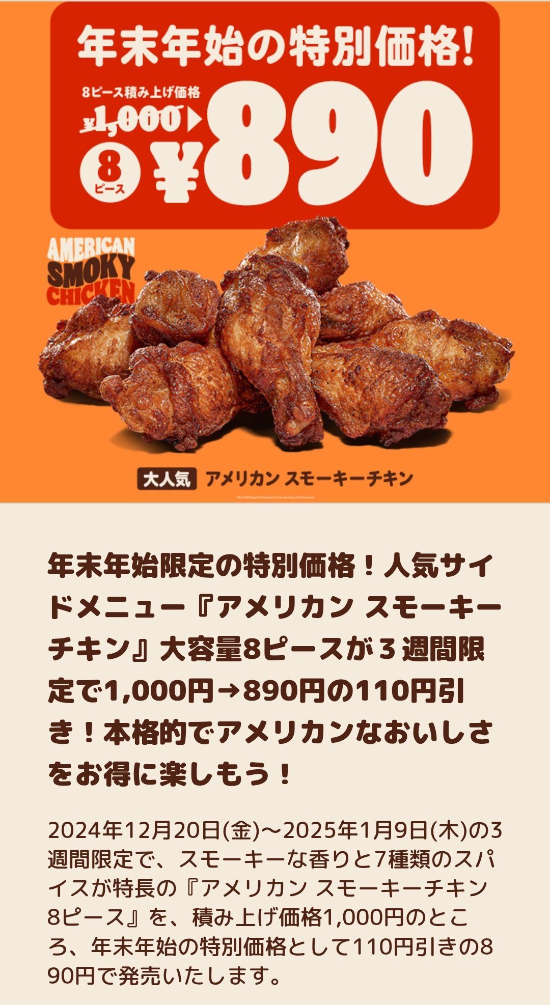 そうそう🎶アメリカン スモーキーチキンが年末年始の特別価格!