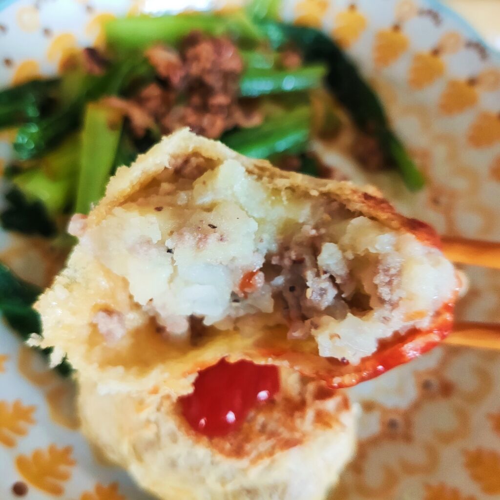 先日、油揚げの焼きコロッケをやってて。
