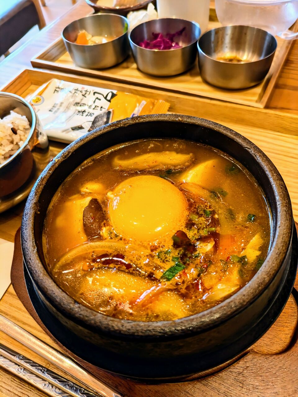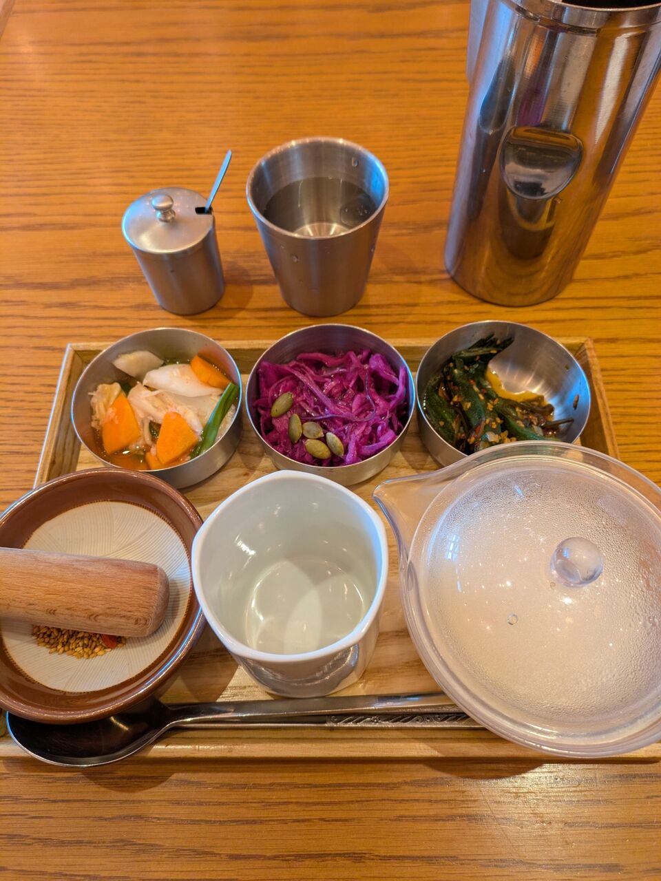 コムタンスープと水キムチや自家製ナムルなどがついてきますよ〜🎶