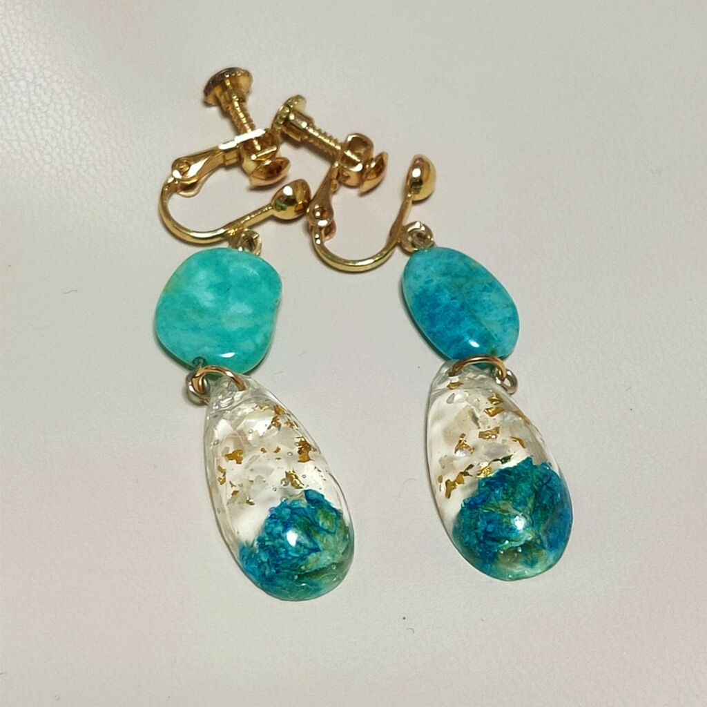 涼し気なブルーに惹かれてゲットしたイヤリングです😍